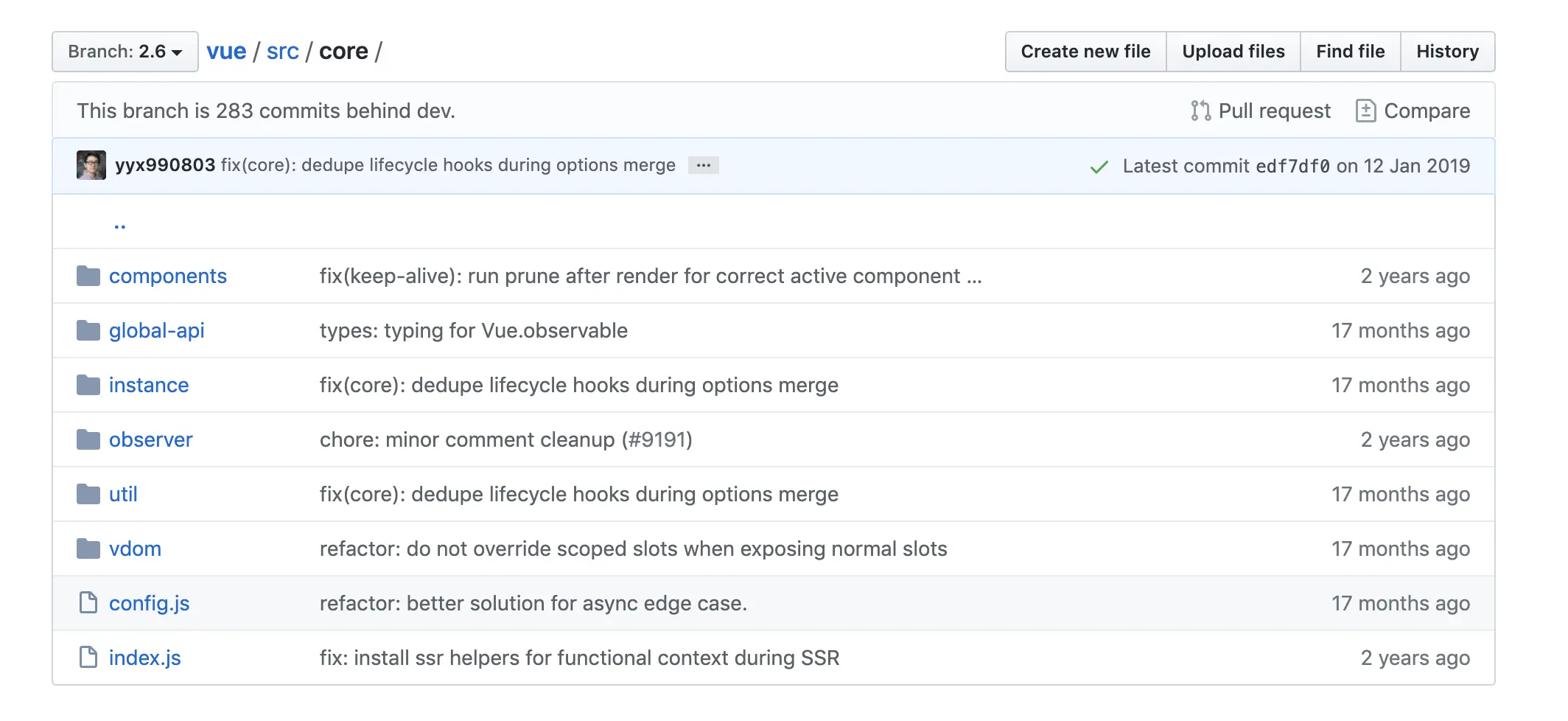 vue的数据响应式系统所有实现的代码都在核心模块下,这里具体列一下这个目录下的代码。