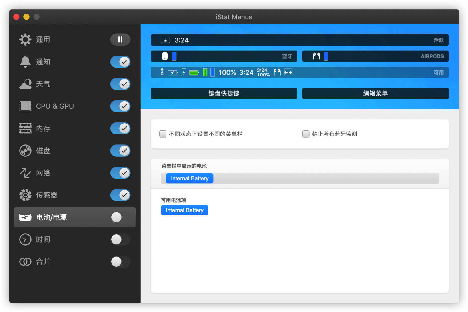 iStat Menus可以根据CPU,GPU,内存,磁盘,网络,传感器,电池,电源和天气向您通知各种各样的事件。这可以让您在公共IP发生变化,互联网连接中断,CPU使用率超过60%超过10秒或接近无限范围的其他选项时收到通知。它甚至可以让您知道当天的天气,或者提醒您夏令时的变化。