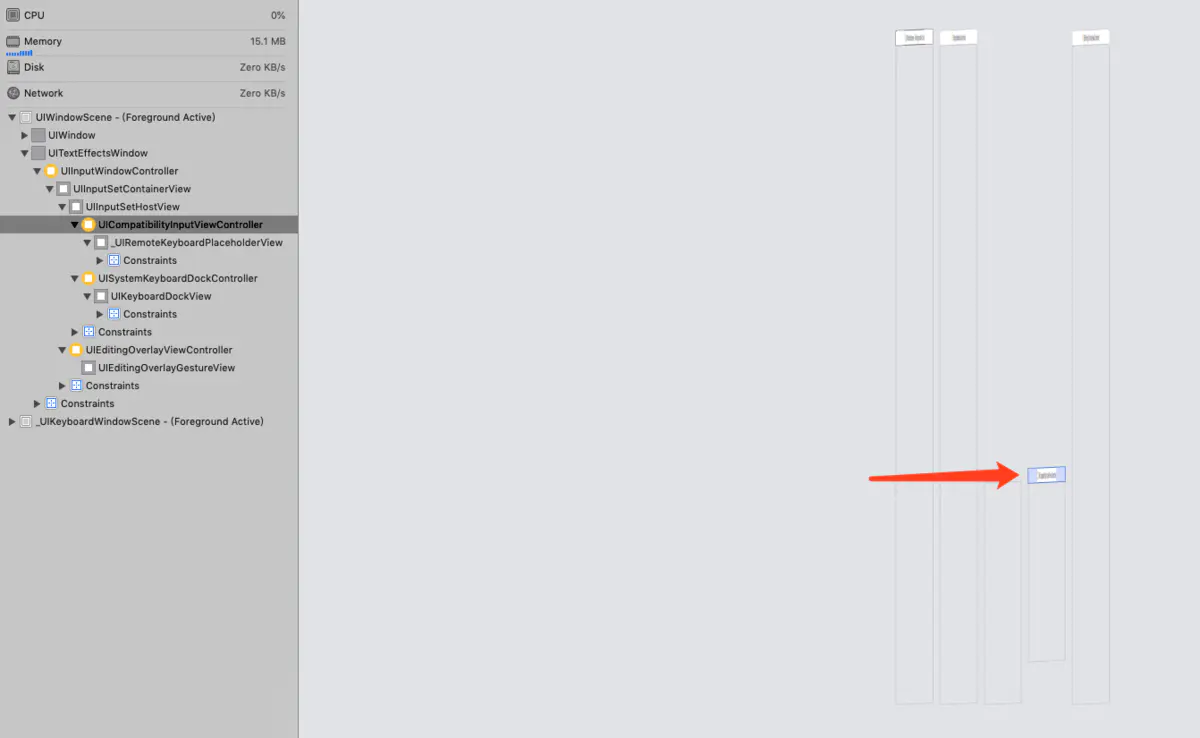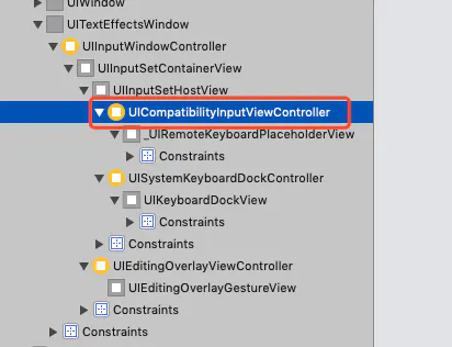 下一层是UIInputWindowController 再下一层是UIInputWindowController 上的UIInputSetContainerView UIInputSetHostView(不满一屏) 下一层才是 UICompatibilityInputViewController