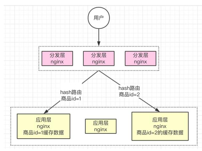 利用hash一致性算法,根据商品id路由分发到同一个应用层ngnix服务器。