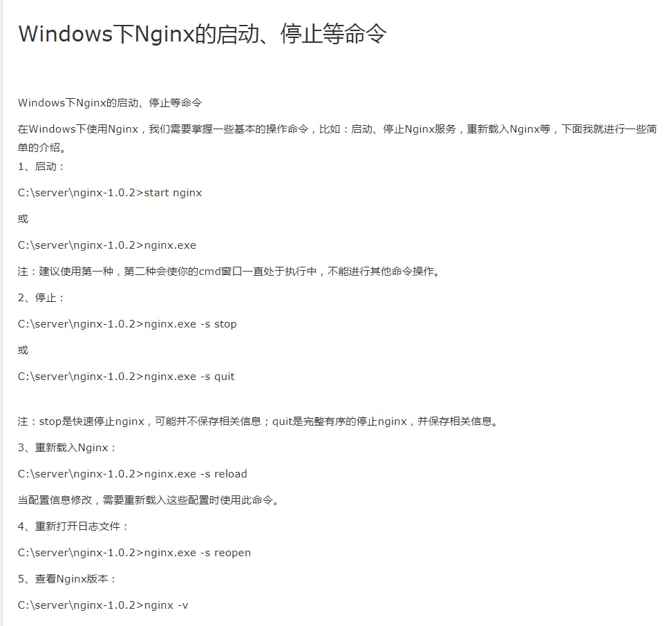 windows下nginx的启动、停止命令