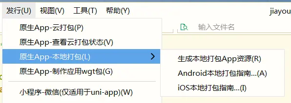 2.hbuilder生成本地打包资源 (发行---本地打包----生成本地打包资源)