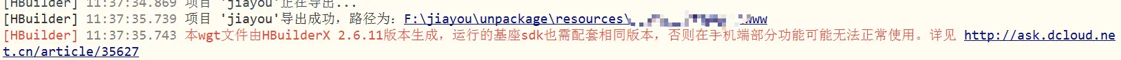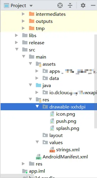 3.资源生成完成 马赛克为hbuilder开发者的appid