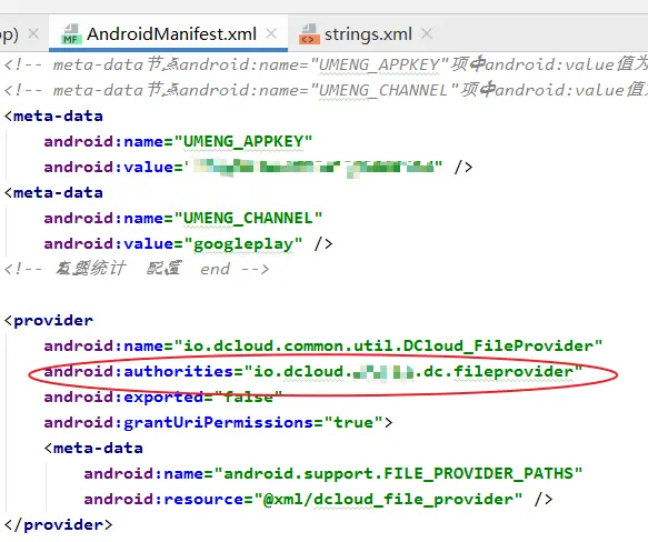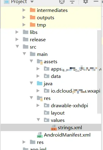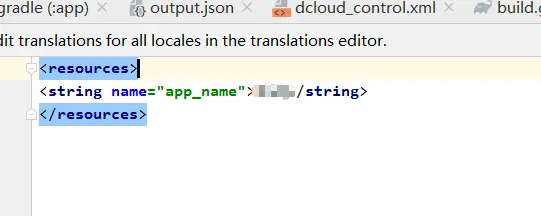 7.修改打包出来的软件的名字(安装后的软件名字,显示在手机上的) strings.xml里,改为自己的软件名字 (马赛克部分)