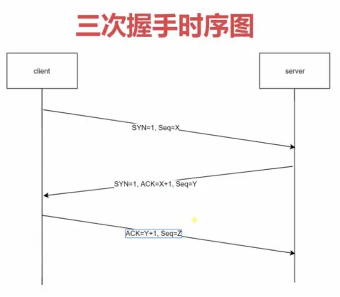 三次握手其实就是三次网络连接,客户端携带 SYN=1,Seq = x 信息给服务端,服务端接受到后,服务端就知道了,有一个客户端要链接我,然后服务器就会开启一个 TCP socket 的端口,然后返回数据给前端也是 SYN=1,SEQ=Y,ACK = x+1,客户端接受到后,在发一个 seq,和 ACK+1. 主要是为了防止开启无用的链接,或者网络延迟丢包,服务器无法确定到底客户端有没有收到消息