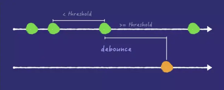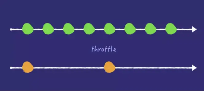 节流 :减少函数执行的频率。规定一个单位时间,在单位时间内触发一个事件回调, 触发时超过间隔时间则执行,否则不执行。