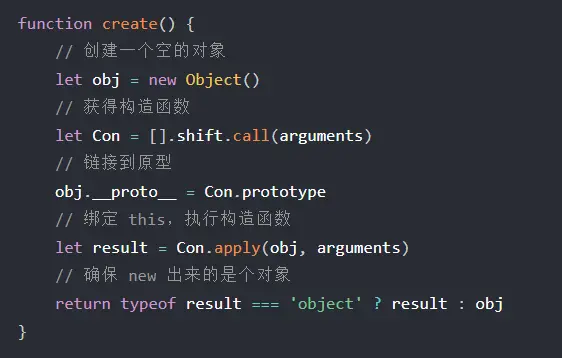 答:1、创建一个新的对象; 2、链接到原型; 3、将构造函数的 this 指向这个新对象,执行构造函数的代码,为这个对象添加属性,方法等; 4、返回新对象。