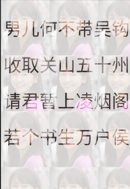 canvas.drawText("若个书生万户侯",20,1200,mPaint);