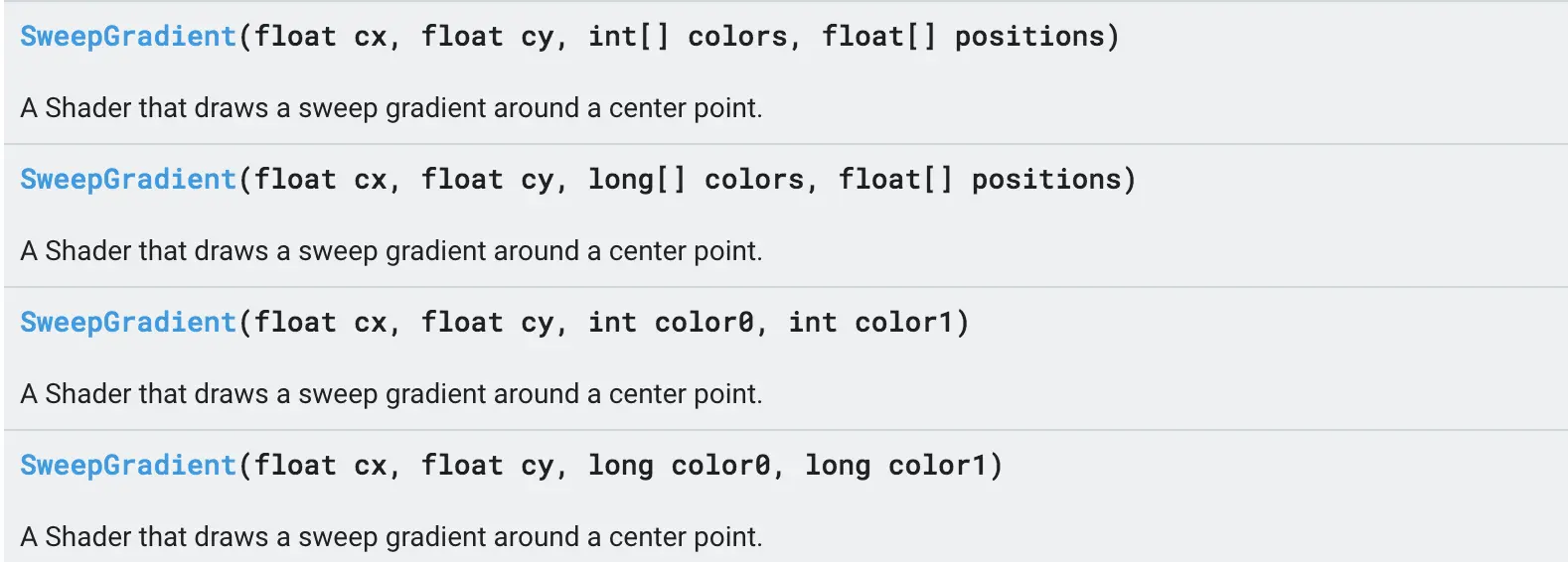 new SweepGradient(mRadius, mRadius,