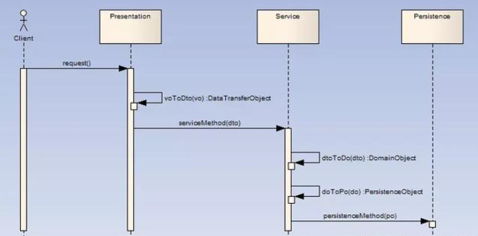 到目前为止,相信大家都已经比较清晰的了解VO、DTO、DO、PO的概念、区别和实际应用了。通过上面的详细分析,我们还可以总结出一个原则: 分析设计层面和实现层面完全是两个独立的层面,即使实现层面通过某种技术手段可以把两个完全独立的概念合二为一,在分析设计层面,我们仍然(至少在头脑中)需要把概念上独立的东西清晰的区分开来,这个原则对于做好分析设计非常重要(工具越先进,往往会让我们越麻木)。