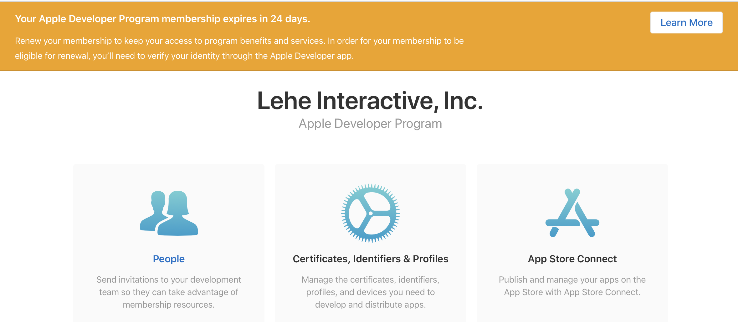 但是,我今天登录开发者账号的时候,右侧是'Learn More',如下图: