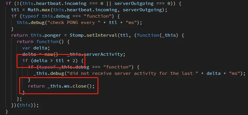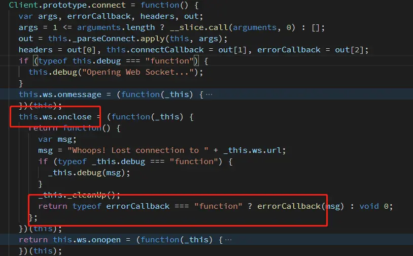 //当心跳失去响应时,stompjs会触发ws.close(), 关闭连接