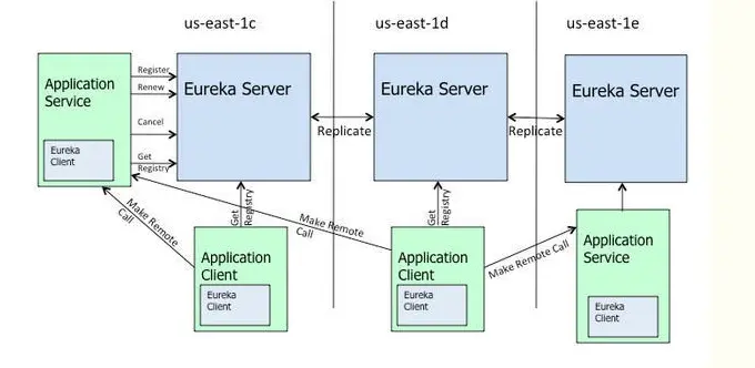 上图是来自eureka的官方架构图,这是基于集群配置的eureka;