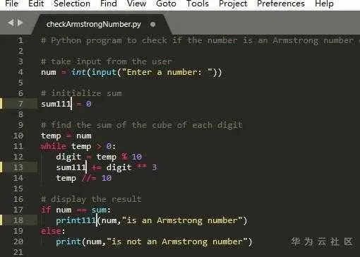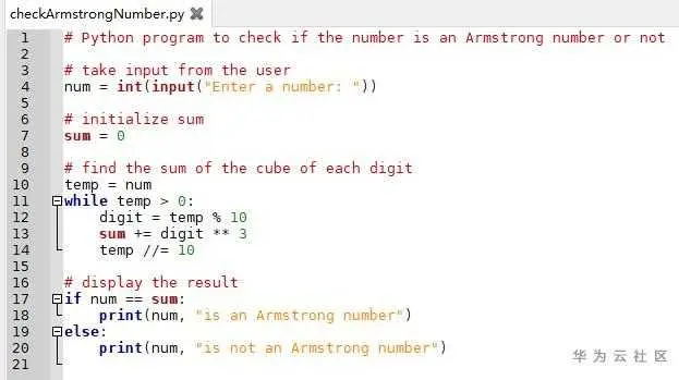 print(num,"is not an Armstrong number")“Compile”:编译代码,类似于执行了python -m py_compile helloWorld.py,生成.pyc文件。pyc是一种二进制文件,是由py文件经过编译后生成的文件,属于byte code。py文件变成pyc文件后,加载的速度有所提高,而且pyc是一种跨平台的字节码,是由python的虚拟机来执行的,这个是类似于JAVA或者.NET的虚拟机的概念。pyc的内容和python的版本相关,不同版本编译后的pyc文件不完全相同,例如v2.5编译的pyc文件在v2.4版本的 python上是无法执行的。