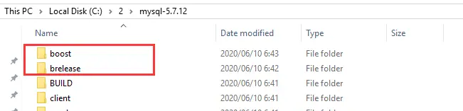 接下来将 mysql-5.7.12.zip 解压一下,然后进入解压后的文件夹,新建一个boost文件夹,将boost_1_59_0.tar.gz放入其中,然后再新建一个 brelease 文件夹可用于存放最终生成的MySql.sln。😄😄😄。