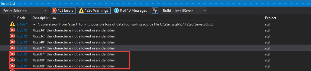 修改起来也很简单,将 C:\2\mysql-5.7.12\sqlsql_locale.cc 用 [utf-8 + BOM] 格式保存一下,然后对mysqld项目Rebuild再Ctrl+F5直接运行,终于谢天谢地,从输出可以看到,搞定啦。。。太不容易啦。