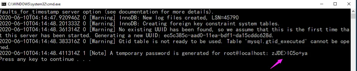 从上图中可以看到,默认密码是:zJDE>IC5o+ya,先记录下这个密码,然后再把CommandLine Arguments 中的--initialize去掉再重启Console。