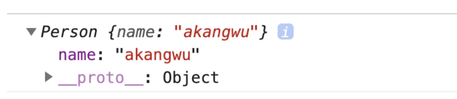 就是我们上面的通过构造函数let p1 = new Person('akangwu')new出来的实例对象,就是我们所说的一个对象。看一下这个对象p1输出的是什么 console.log(p1)