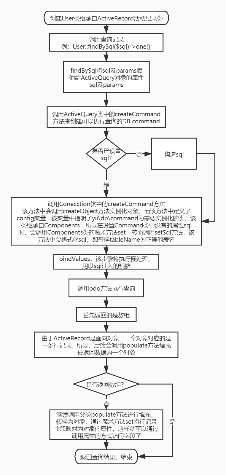 下图为Yii2框架的ActiveRecord查询语句源码基本逻辑: