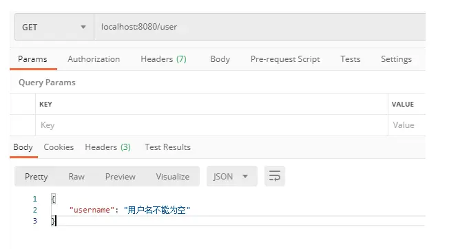 public ResponseEntity getUser(@NotNull(message ="用户名不能为空") String username) {