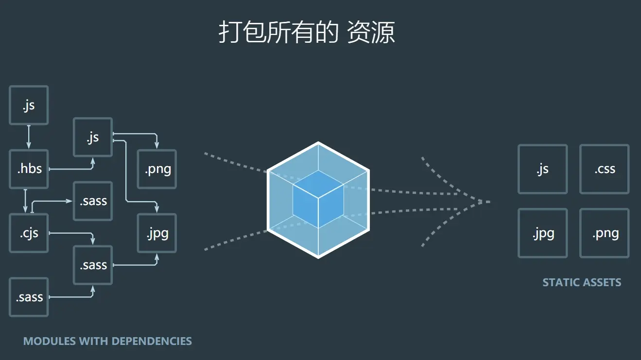 可以理解为就是一个打包工具,帮助我们将各种文件例如css,less,sass,js,ts,jpg,png等文件有序打包在一起。
