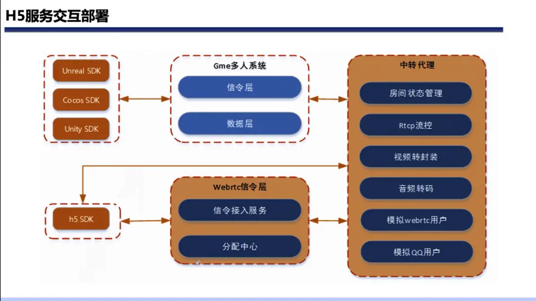 Native和H5不同,natie把数据层连接,连接完之后走到数据层,通过转码转到webrtc,然后回到我的代理服务器,代理服务器跟H5互通。反过来在H5想互动,也是这样实现的。