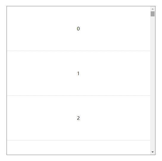 - 目前只能固定item的高度,我没有想到过能够渲染动态高度的方案,适用于表格列表、同等高度的列表等