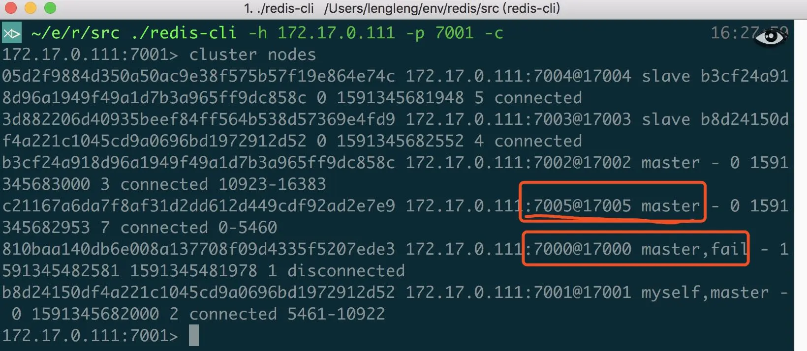 b8d24150df4a221c1045cd9a0696bd1972912d52 172.17.0.111:7001@17001 master - 0 1591344590513 2 connected 5461-10922