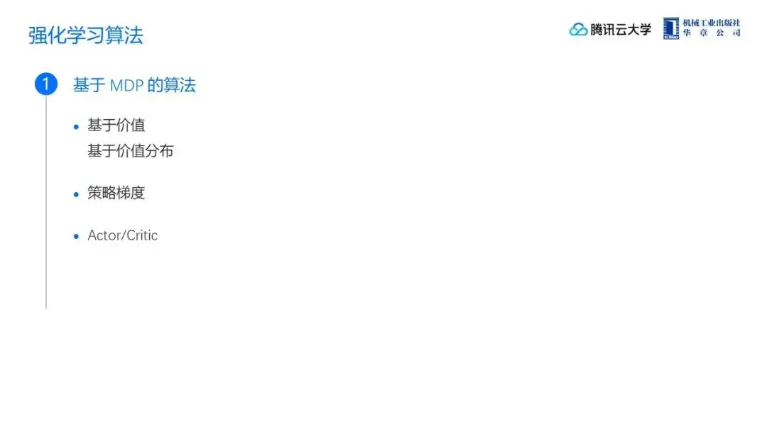 如果我们假设环境是概率驱动的,并且确定使用MDP,在这种情况下强化学习算法还可以根据是否使用价值或价值分布或策略梯度来进行划分,如果同时应用了价值和策略梯度,我们就称为Actor/Critic算法。