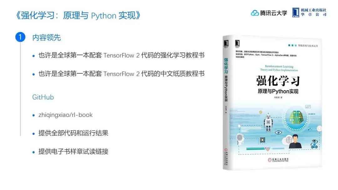 接下来推荐下我的新书《强化学习原理与Python实现》,这里面的既包括了经典的非深度强化学习算法,也包括深度强化学习算法。
