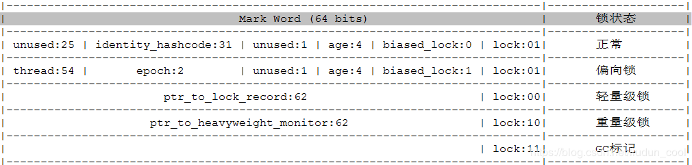 从上面我们知道了对象的组成,其中重点是markword:可以看到锁升级相关信息