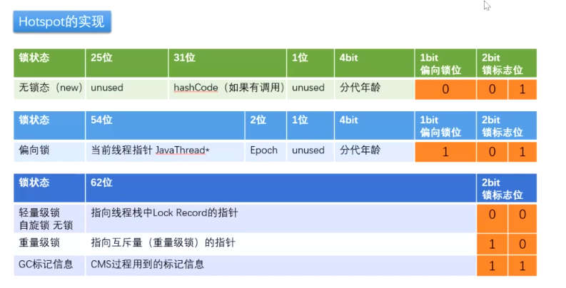 - 有其他线程与之争抢该资源, 诶?发现这个资源thread位置已经记录了一个线程id(加了偏向锁), 此时会升级为轻量级锁(也叫自旋锁,无锁):CAS实现