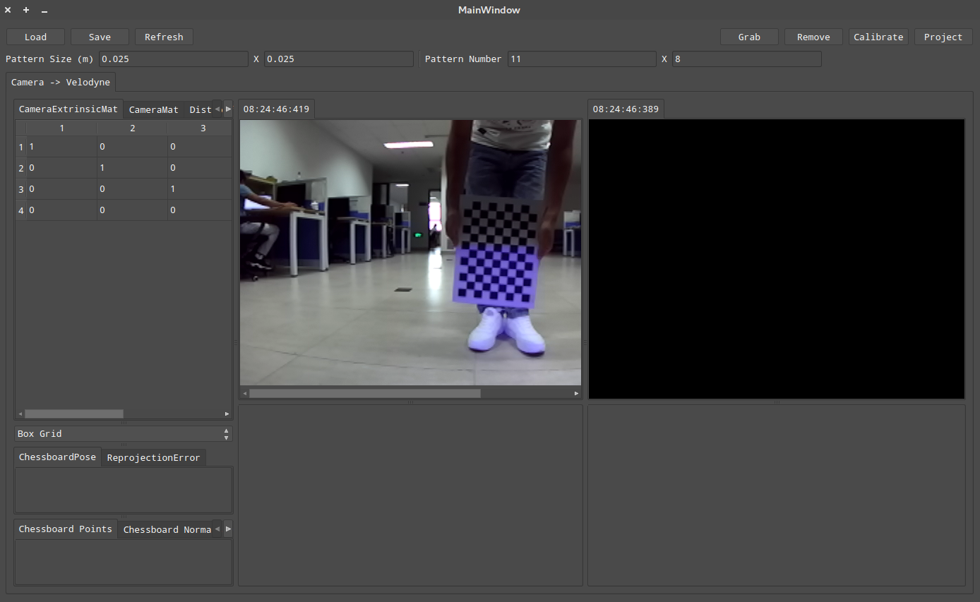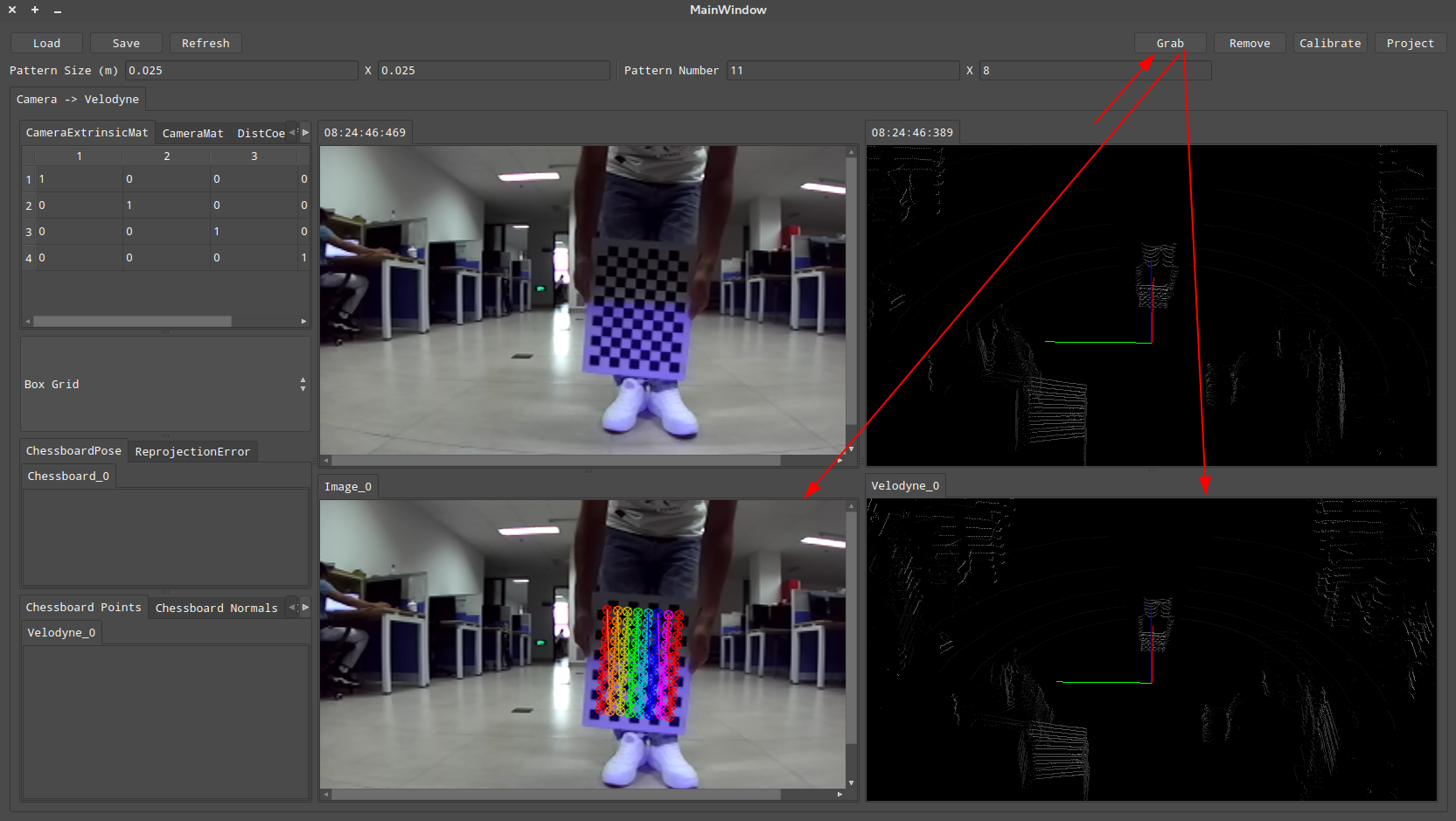 如果你点击 grab 没反应很正常,可能是棋盘格离得太远或者模糊了,你多试几个位置应该就能捕获到,我回放一个 Bag 也就捕获了 9 张左右。