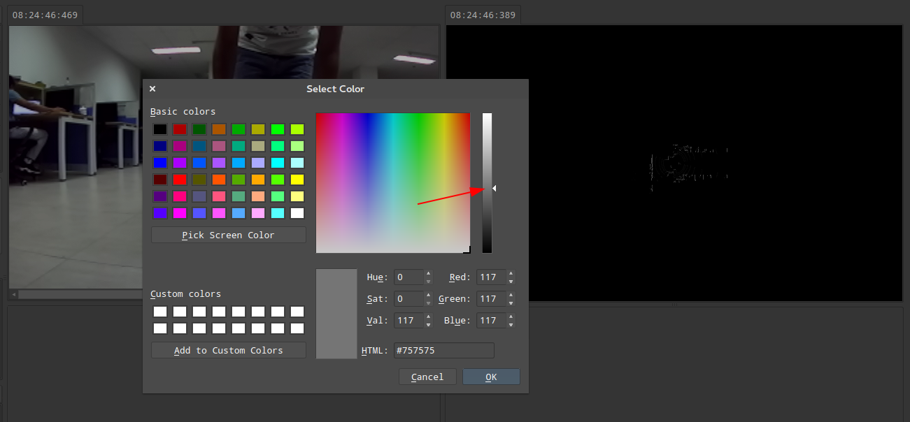 之后点击右上角的 Grab 捕获当前帧的图像和点云,使用 - 和 + 缩放视角: