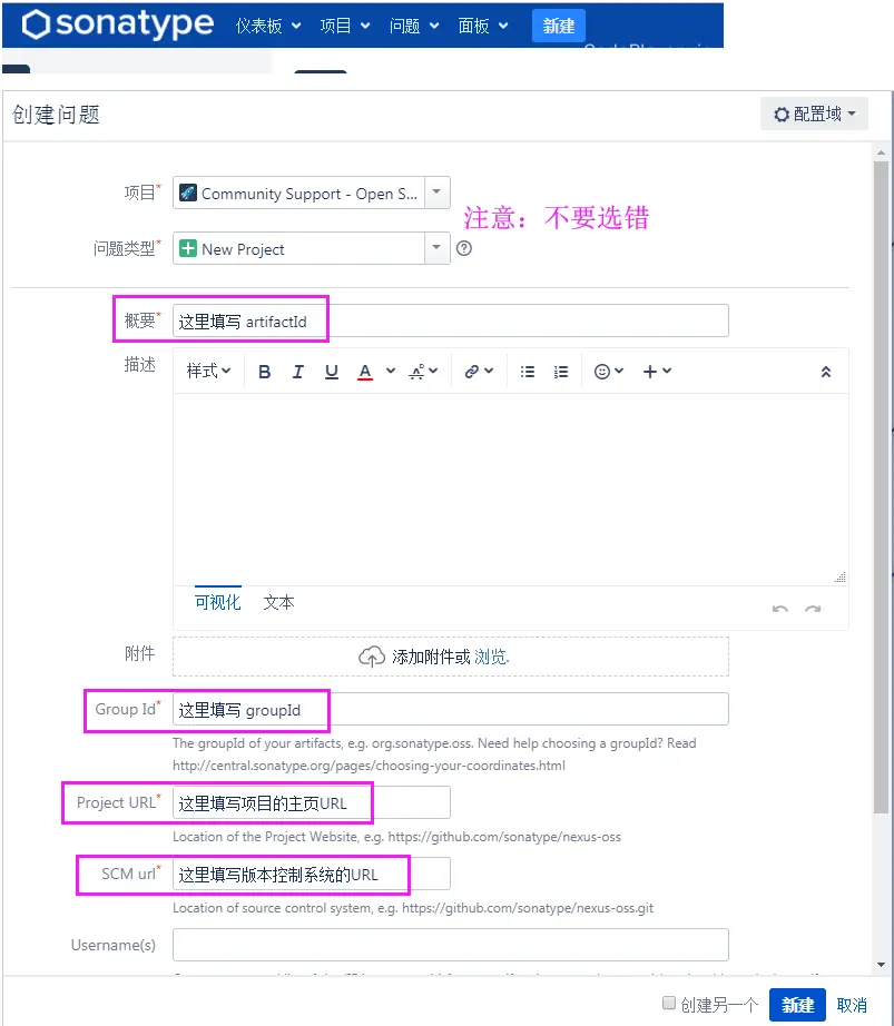 - 工单管理:issues.sonatype.org