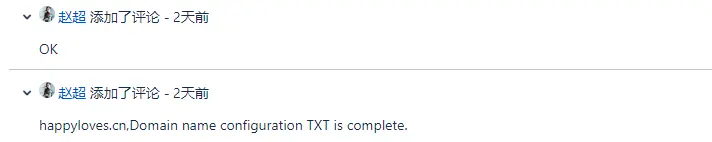 - 为域名添加一个指向 Issue编号 的TXT记录;