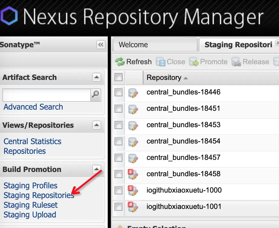 登录oss.sonatype.org,然后选择staging Repositories