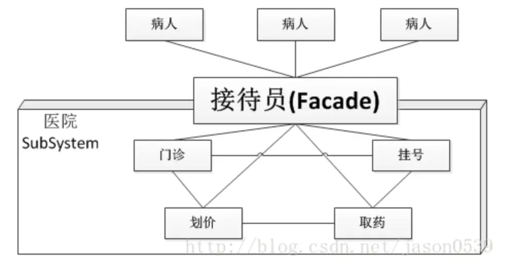 包工头和接待员都是一个门面,通过直接跟门面打交道,不需要跟后面的打交道,更加简单。