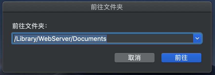 首先Command+Shift+G,前往Apache服务器的文件路径(/Library/WebServer/Documents),如图:
