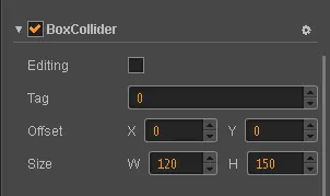 在属性检查器中可以看到碰撞体的属性,选中Editing可以通过拖动对其大小进行修改。