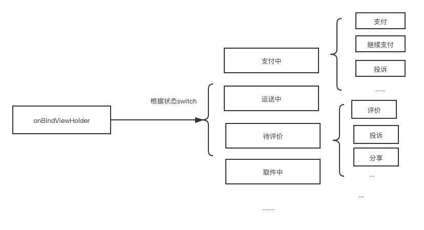 订单列表可以说是app最重要的组成部分,包含许多重要的逻辑,跳转支付,订单详情,催单还有一系列的订单状态变化,这块代码是很久之前写的,然后经过很多手,逻辑代码全部写在一个订单列表的适配器里,导致这一块的代码难以维护,代码可读性也很低,经常为了改一个小问题,上上下下的找相关逻辑,于是有了重构的想法。