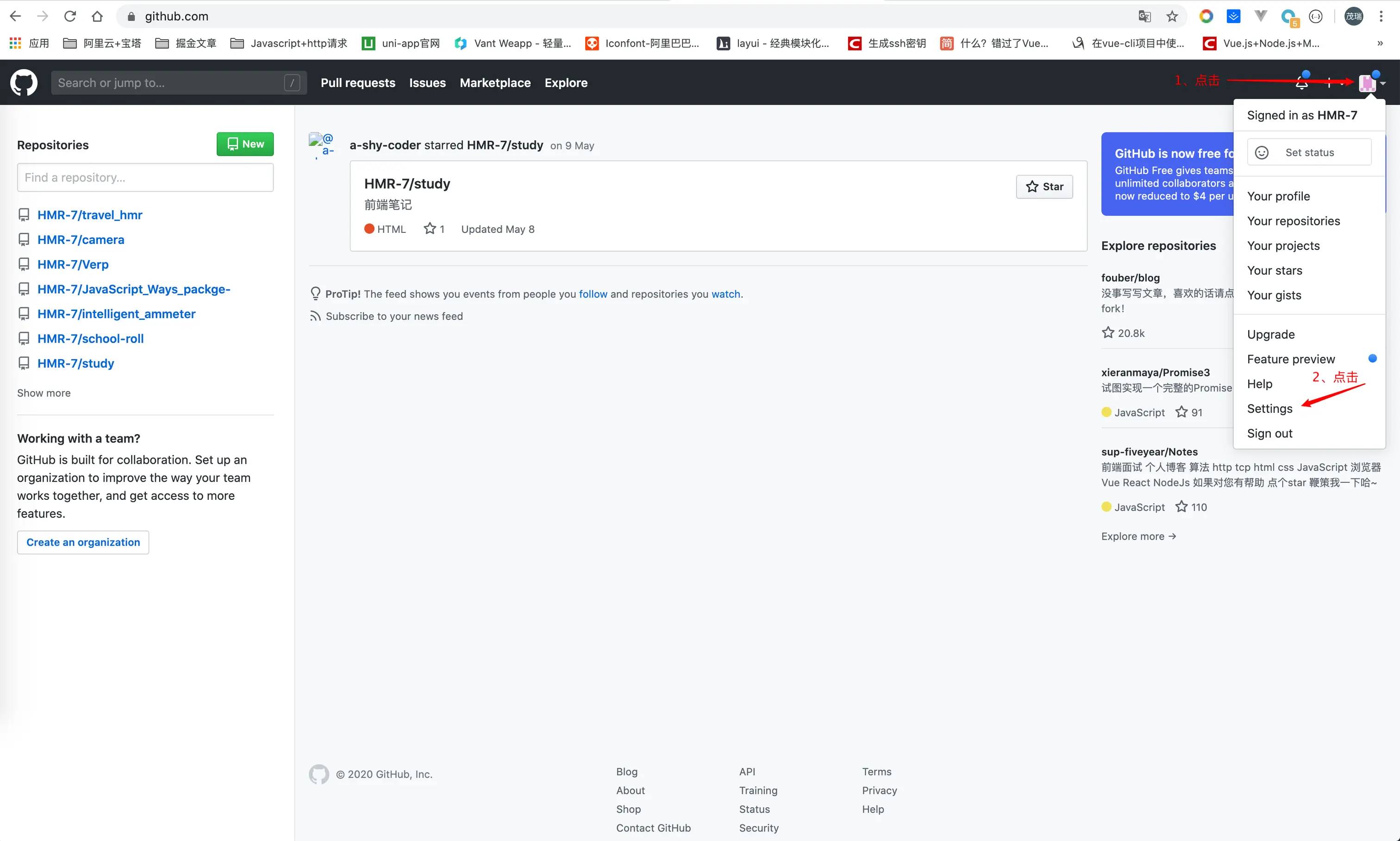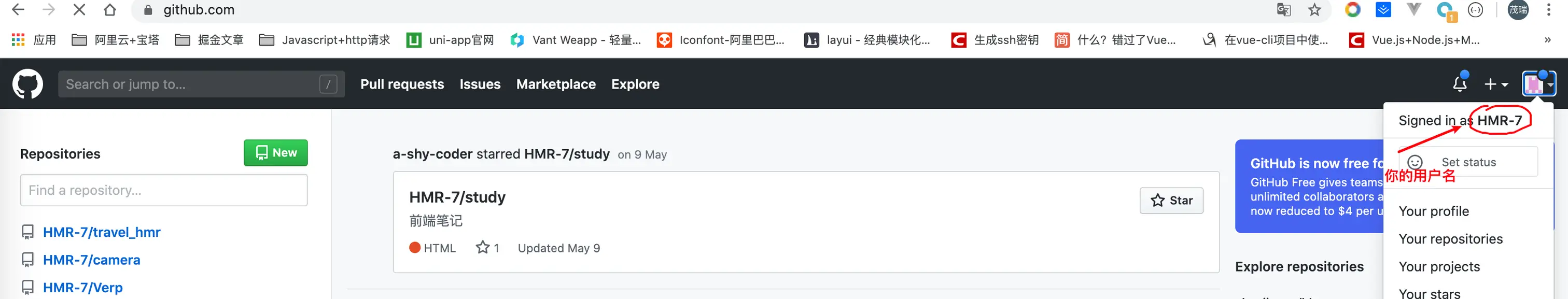 3、⚠️:下图蓝色箭头代表我有两台电脑能从我的GitHub仓库上拉取仓库