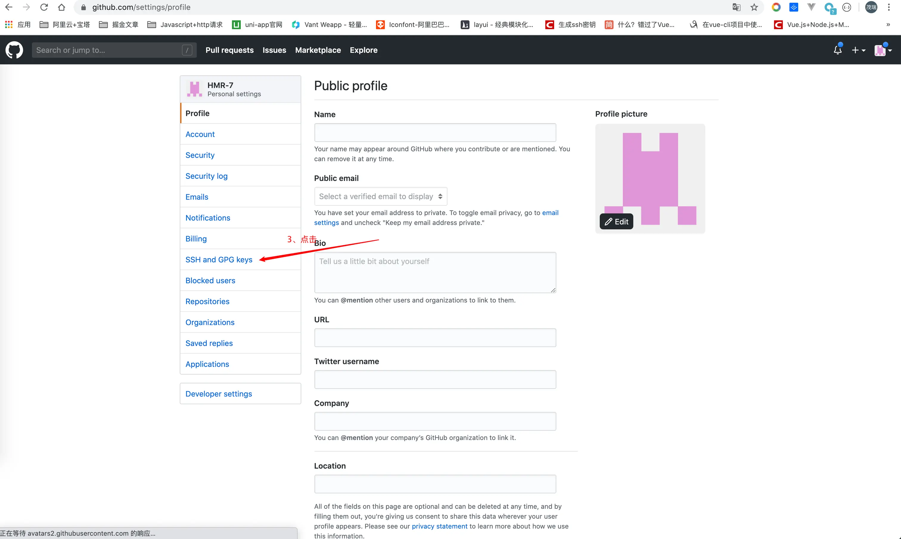 第二步、密钥放置在github上