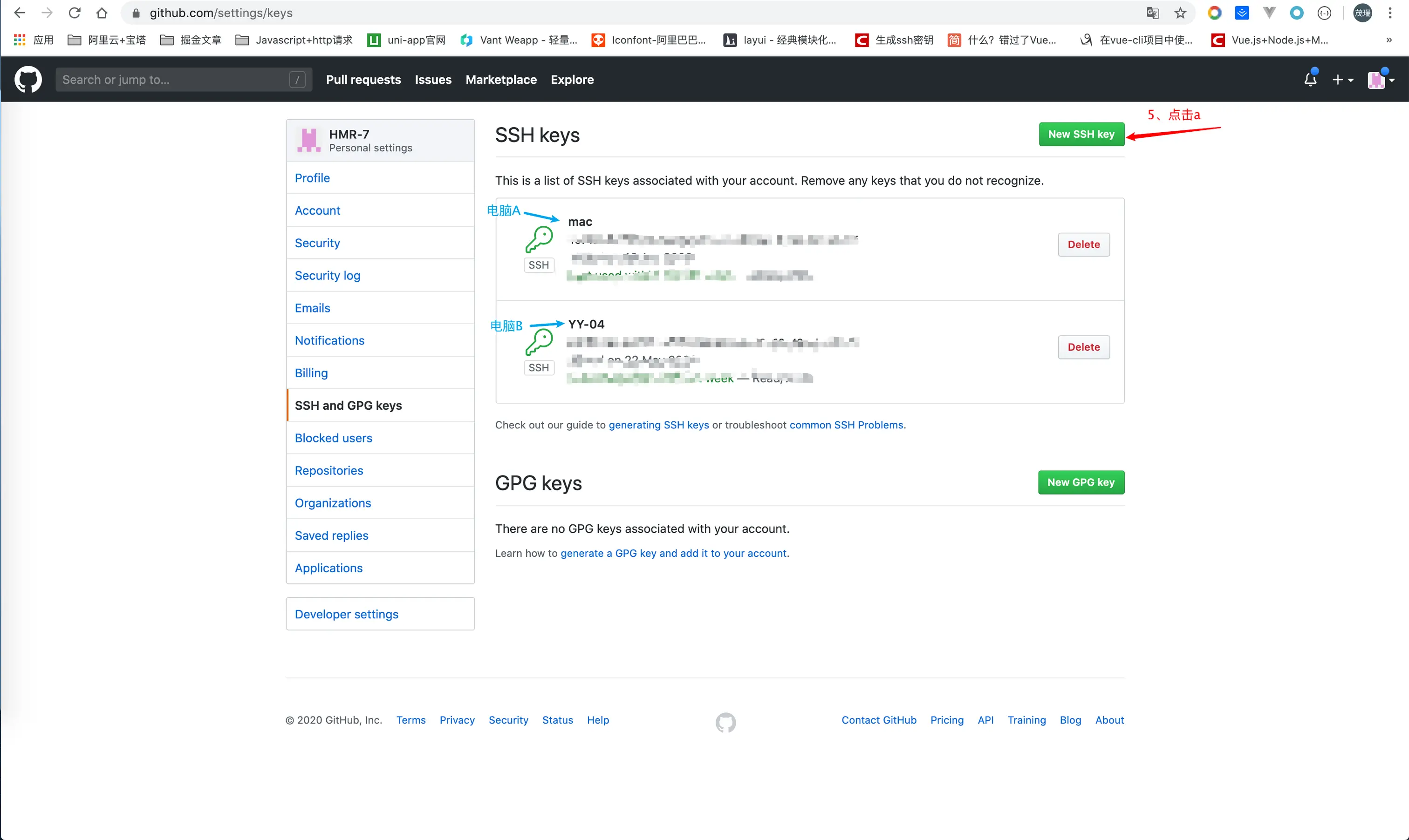 这样做的目的是为了该电脑能拉取代码,建立联系