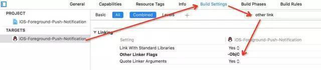 2. targets --> Build Settings --> 搜 other link --> 添加 -ObjC。
