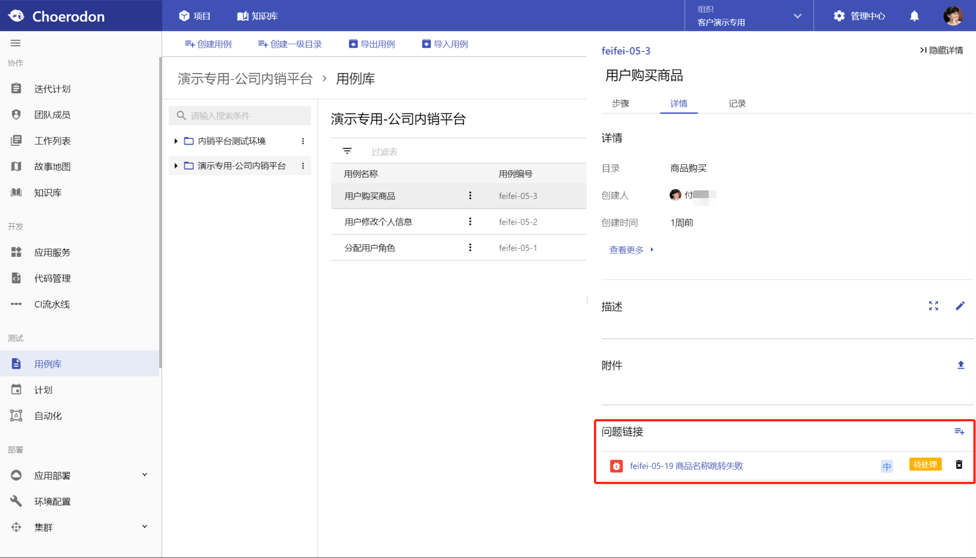 将执行完的有bug的测试用例关联敏捷协作中的缺陷。在敏捷协作中一个缺陷可以快速定位到测试用例,帮助开发者快速获取测试结果,实现测试闭环。