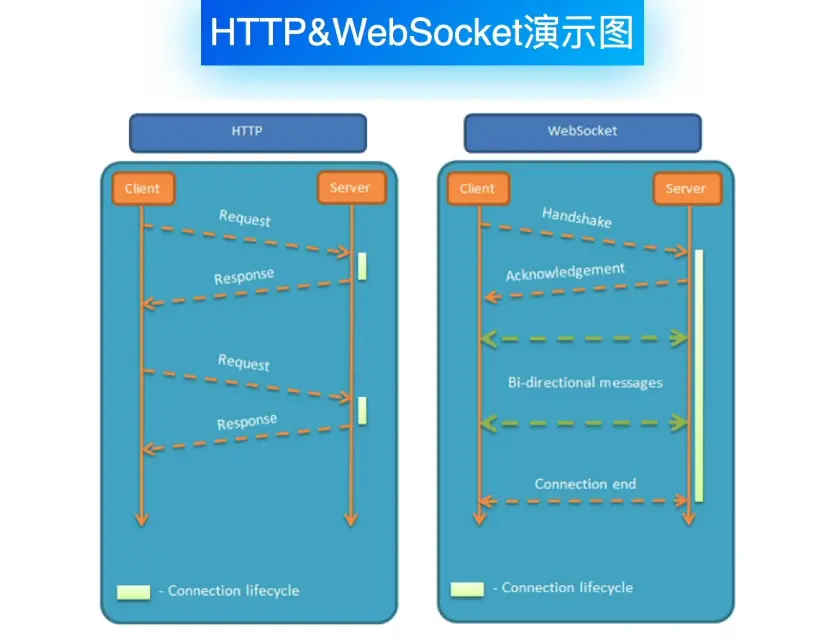 2、双向数据传输,实现服务器和客户端真正的双向平等对话。