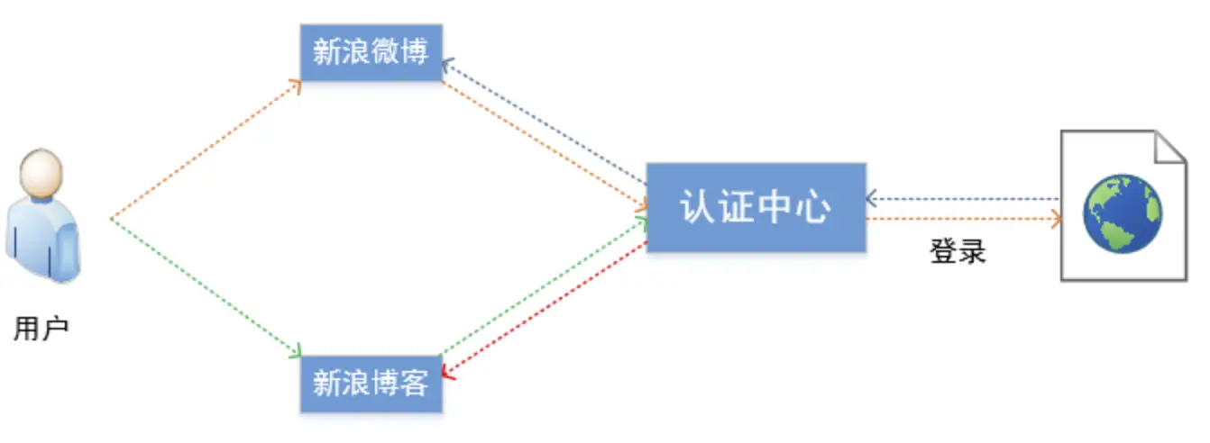当用户已登录新浪微博访问新浪博客时,新浪博客识别到用户未登录,将请求重定向到认证中心,认证中心识别到用户已登录,返回用户的身份,此时用户无需登录即可使用新浪博客。