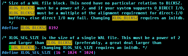 这里的数字单位是byte,即XLOG_BLCKSZ=8K, XLOG_SEG_SIZE=16M,对应参数只允许在编译时被修改: