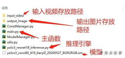 这里我们输入的是视频,使用OpenCV读取的视频,得到视频帧,对每一视频帧进行逐帧处理,注意OpenCV得到的帧是BGR格式,需要转为RGB格式,而且视频帧大小不一定符合模型输入要求的416*416, 所以还要做resize。我在模型转化时,开启AIPP,完成BGR到RGB的色域转换,而resize使用OpenCV来完成。之后送入模型,得到推理结果,对推理结果解析,最终将结果写入图片保存。